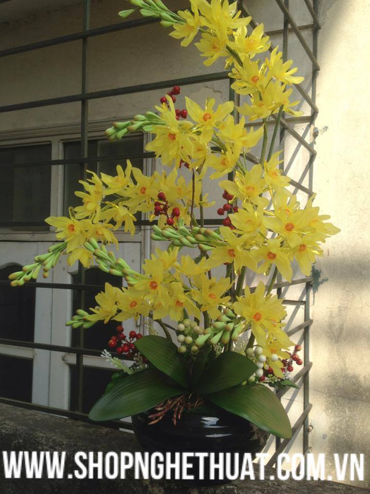 - Hoa Địa Lan Vàng - Mã: HPL 227 sử dụng Nụ Lan Đất Sét: Nụ Địa Lan Dài màu Xanh