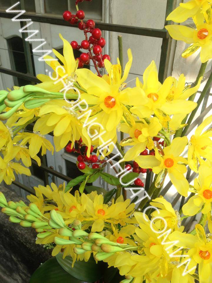 - Hoa Địa Lan Vàng - Mã: HPL 227 sử dụng Cành Quả Nho Xốp - loại dài