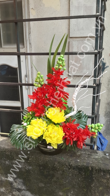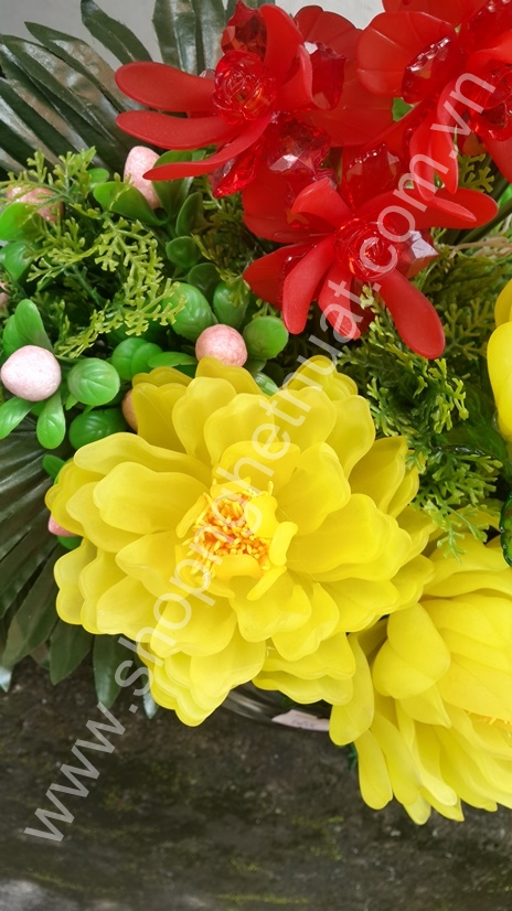 Hoa Pha Lê - Hoa Mẫu đơn vàng Lan đỏ - Mã: HPL 210