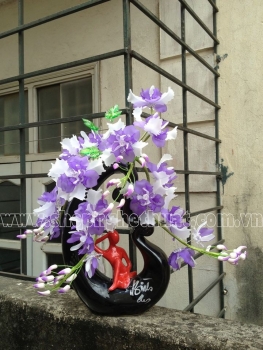 - Hoa Pha Lê cắm trên bình nghệ thuật Trắng xen Tím sử dụng Cánh Oro ( Đục - Size To) màu Trắng