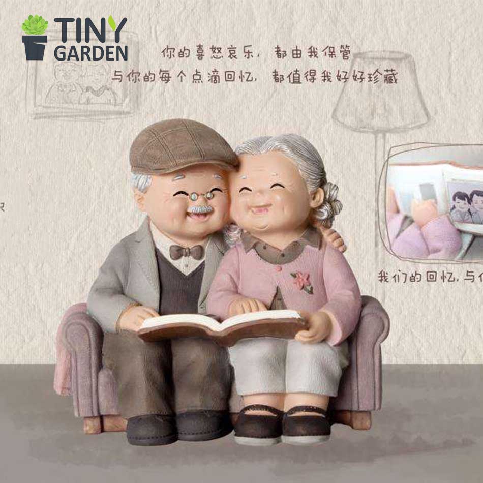 Ông bà lão hiện đại ngồi ghế đọc sách