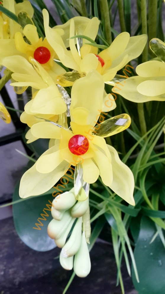 - Hướng Dẫn Làm Hoa Pha Lê - Hoa Lan vàng chấm đỏ 2 tầng - Mã: HPL 214
