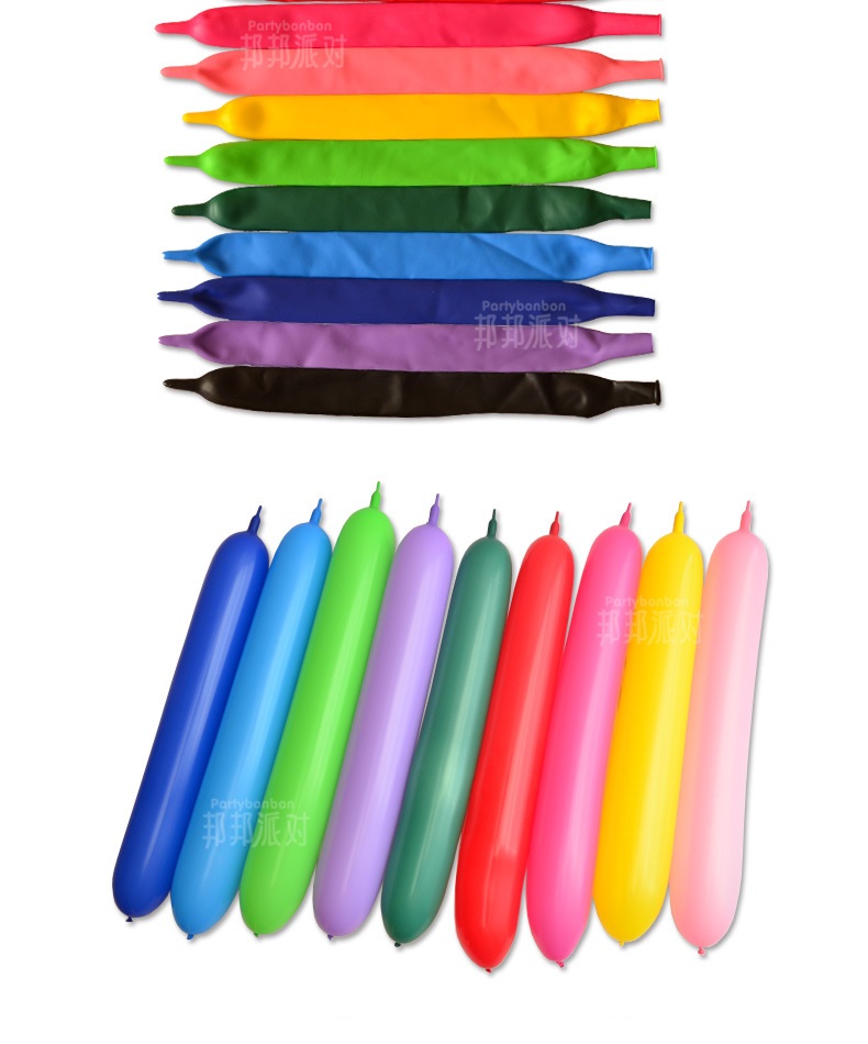Bóng bay dài xinh xinh với nhiều màu sắc sặc sỡ bắt mắt giúp bữa tiệc sinh nhật của các bé thêm đặc sắc. Các bố các mẹ có thể dùng những quả bóng nhiều màu sắc này để tạo thành 1 chùm bóng lớn, gắn lên tường hoặc thả bay tự do cho các bé chơi đùa