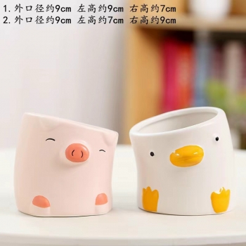Chậu heo và gà con nghiêng đầu