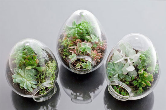 Terrarium- nghệ thuật sắp đặt tiểu cảnh trong bình thủy tinh dần đang trở thành một cơn bão làm giới trẻ không khỏi sốt-xình-xịch. Bình thủy tinh thì nhiều hình dạng, nhiều kích cỡ lại nhỏ xinh trong lòng bàn tay. Món quà lại có thể để được ở rất nhiều vị trí: trên bàn làm việc, khung cửa sổ hay treo lên như khu vườn trên mây.